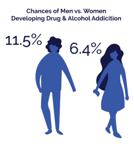 Women metabolize alcohol and drugs differently from men. Even small doses can lead to stronger effects and quicker dependency. Hormonal changes, stress response, and body composition all contribute to higher vulnerability.